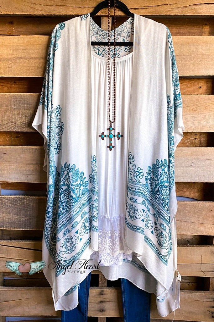 Mandala Print Oversized Kimono - Teal