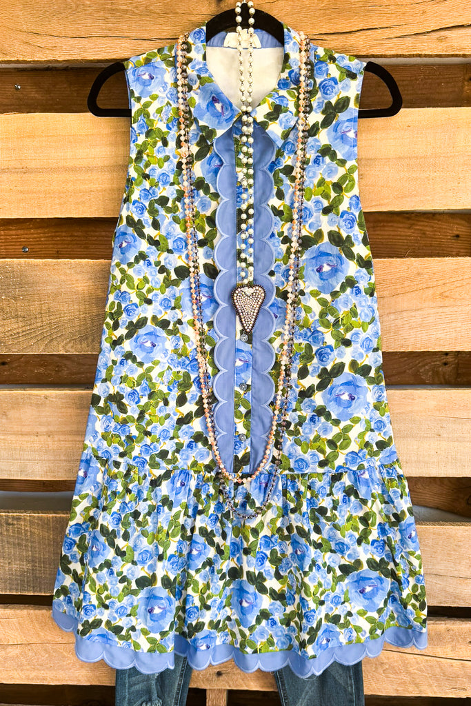 Everlasting Blooms Dress - Blue - 100% COTTON