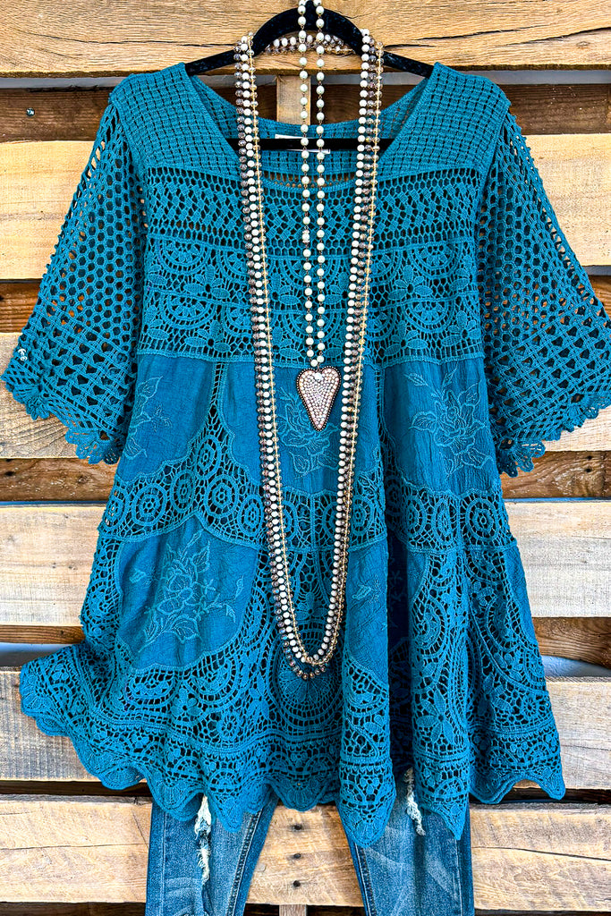 AHB EXCLUSIVE: Delightful Details Cotton Top - Teal - 100% COTTON