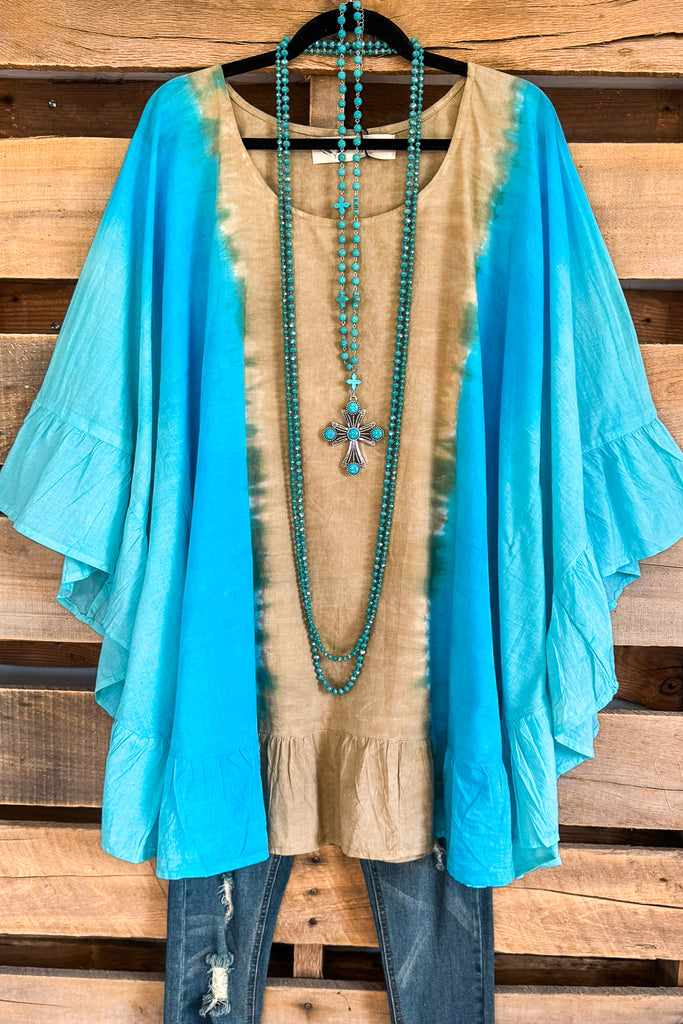 AHB EXCLUSIVE: Fading Sunsets Poncho - Blue/Tan - 100% COTTON