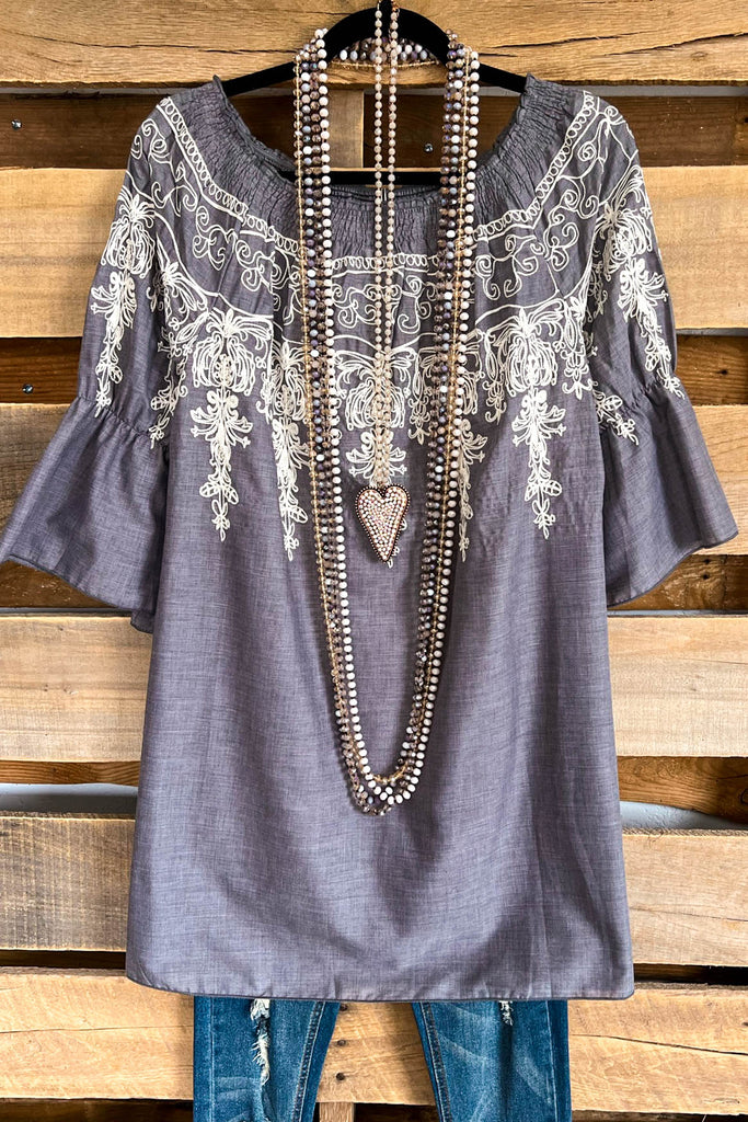 All Tangled Up Top - Gray- 100% COTTON