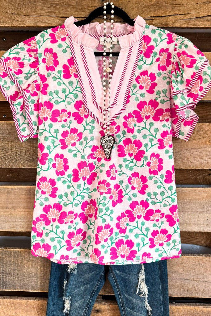 Brilliant Bouquets Top - Pink - 100% Cotton