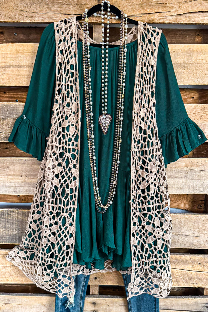 Floral Enough Crochet Vest - Mocha - 100% COTTON