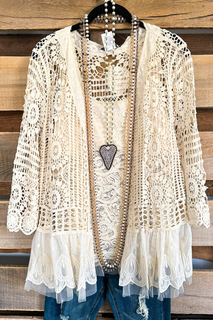 Graceful Charm Crochet Cardigan - Beige - 100% COTTON