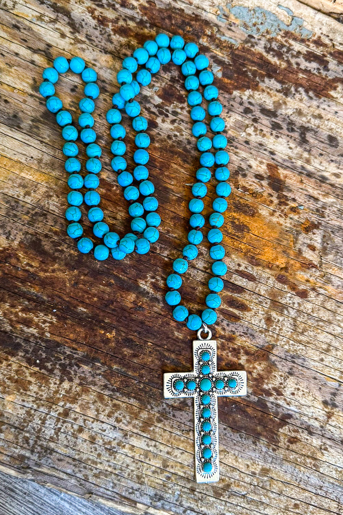 Leopard Skin Cross Necklace - Turquoise
