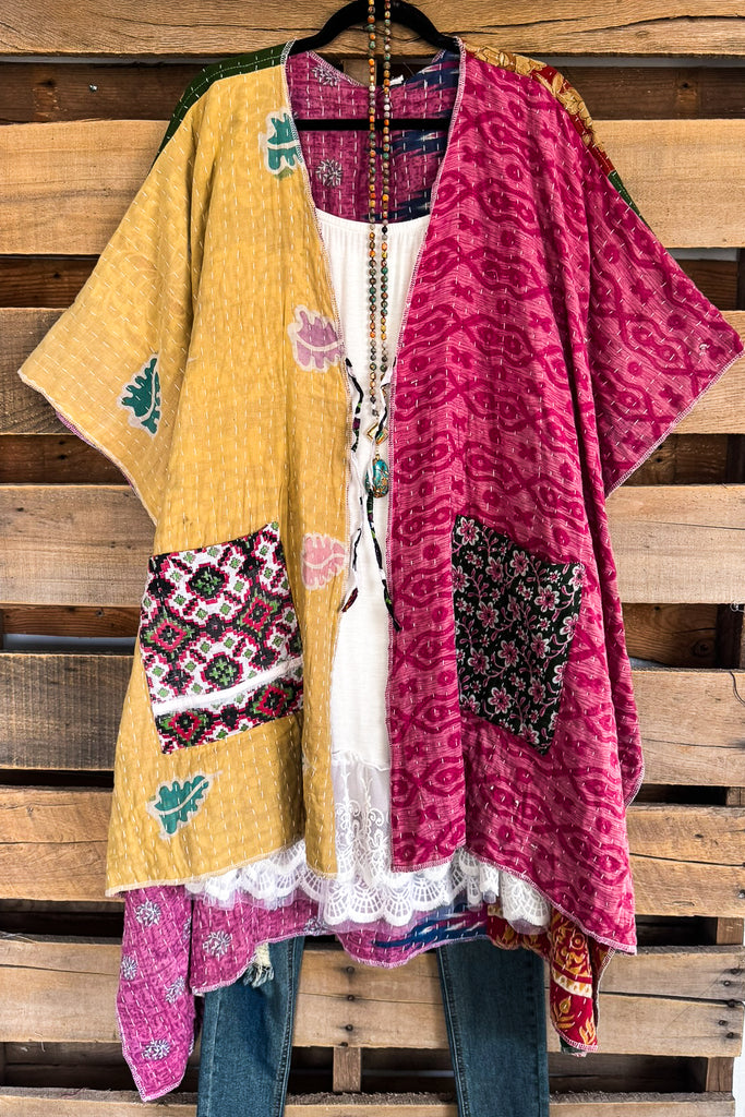 NATURAL FABRICS: Assorted Feelings Tie Front Kimono - 100% COTTON