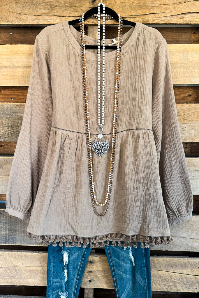 Simple And Sweet Gauze Top - Taupe - 100% COTTON
