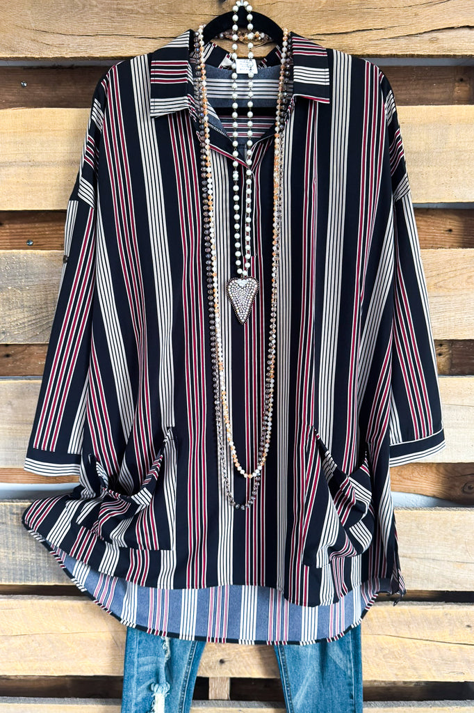 Strips Of Harmony Oversized Dress/Tunic - Black