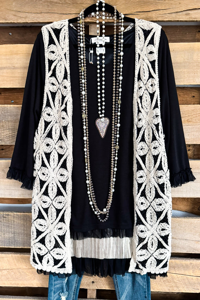 Only With You Crochet Vest - Black/Beige- 100% COTTON