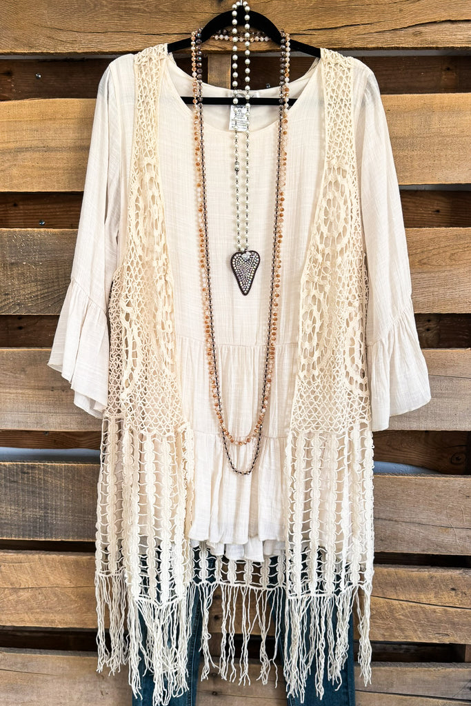 Pure Moments Crochet Maxi Vest - Beige - 100% COTTON