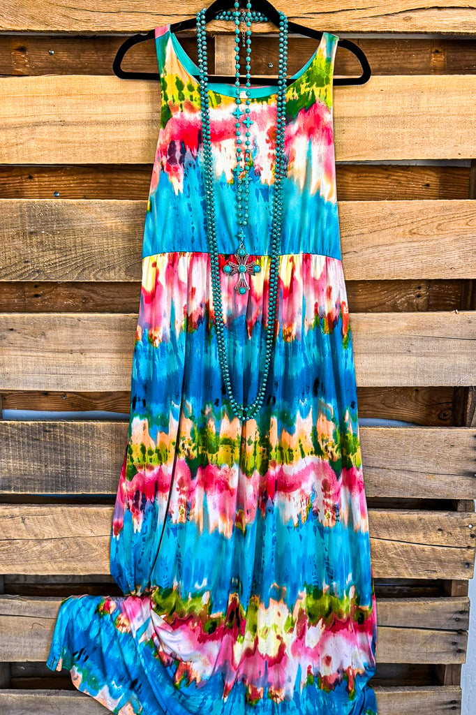Destined For Excitement Maxi Dress - Aqua/Pink - SALE