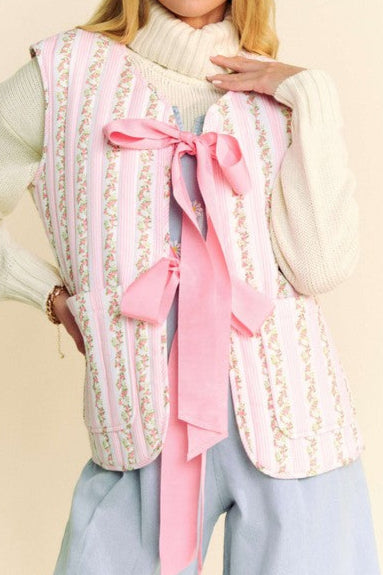 Love And Bow Ties Quilted Vest - Pink - 100% COTTON - SALE