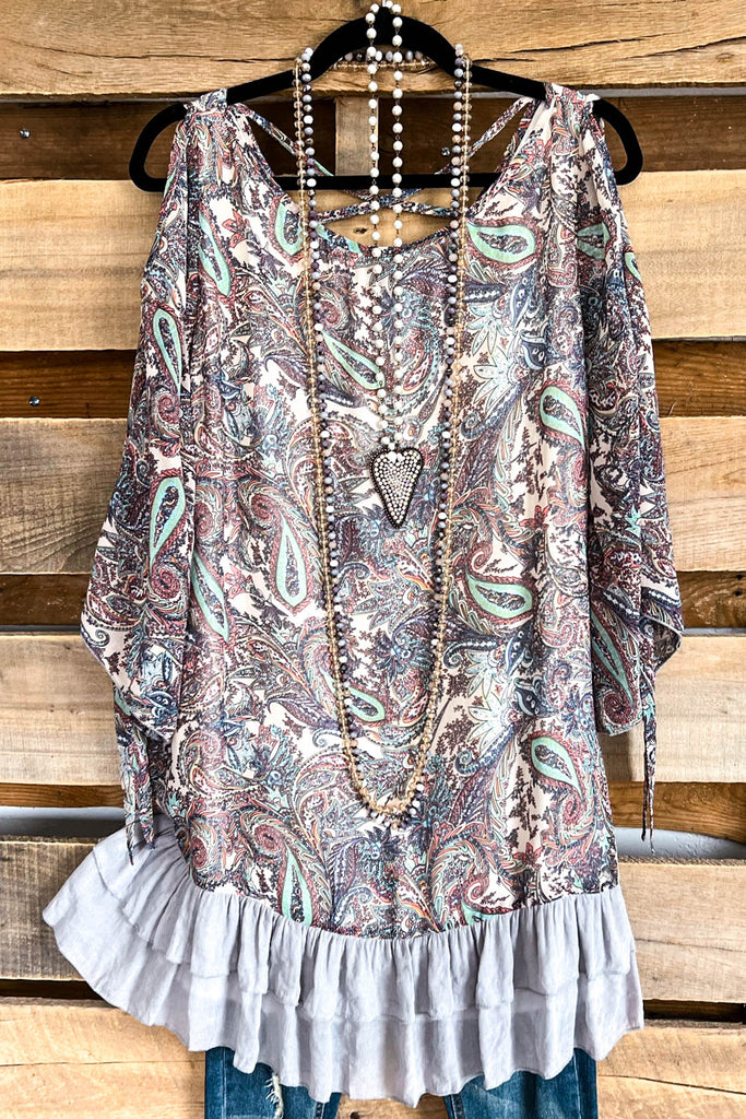 Twirl With Grace Cold Shoulder Top - Multi Grey - SALE
