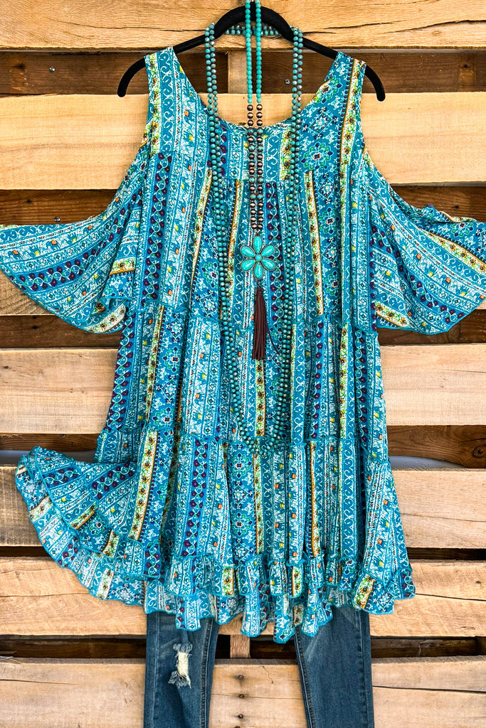 Voice Of Truth Tunic Cold Shoulder - Multi Blue - SALE