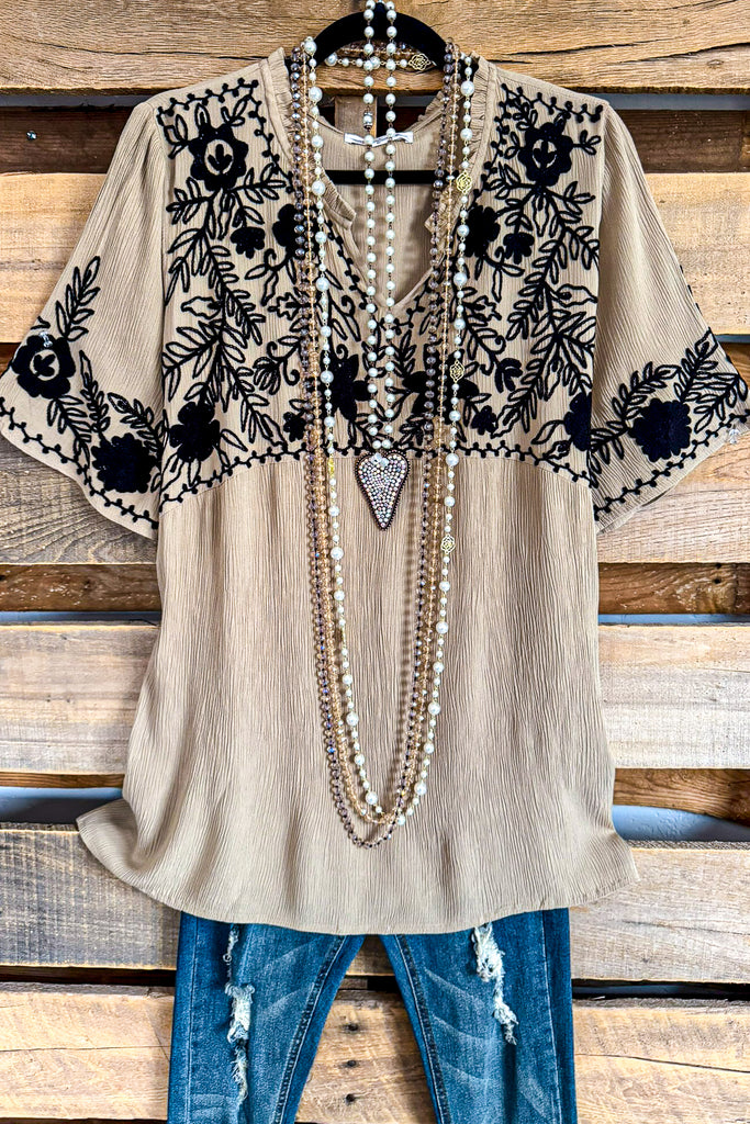 AHB EXCLUSIVE: Taken Back Embroidered Top - Fawn