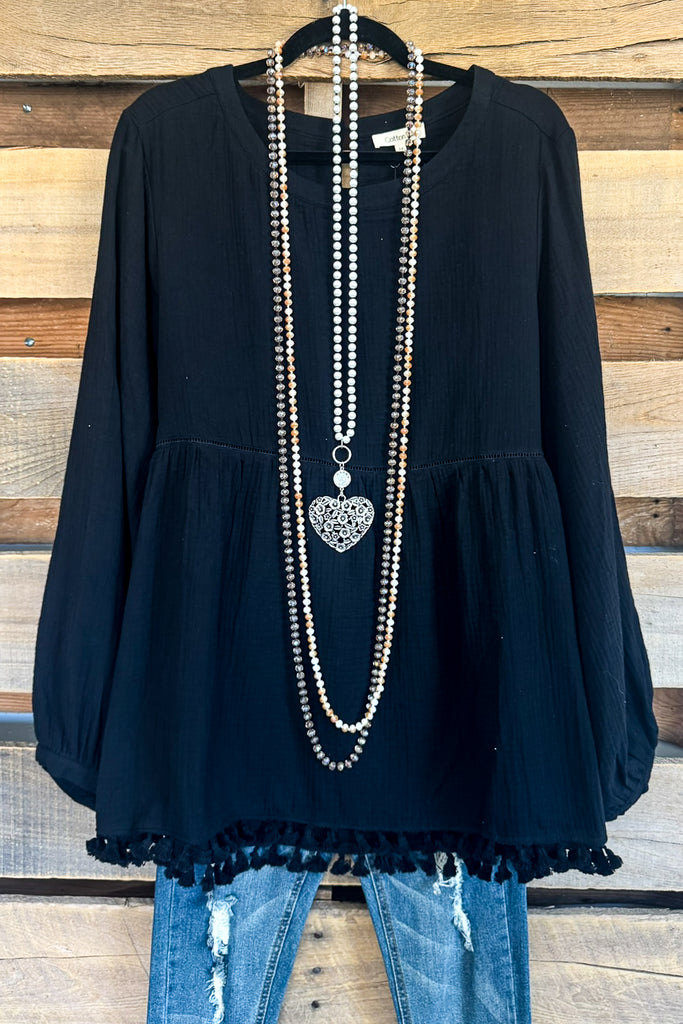 Simple And Sweet Gauze Top - Black - 100% COTTON