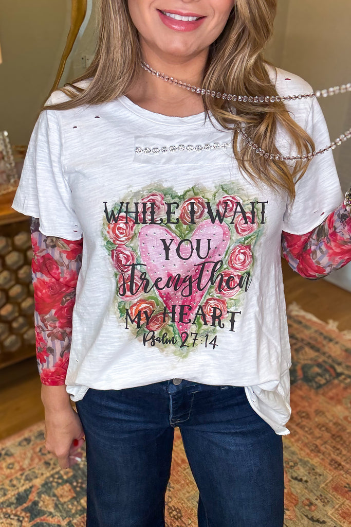 While I Wait You Strengthen My Heart -Psalm 27:14- 100% Cotton - Short Sleeve -Made in USA